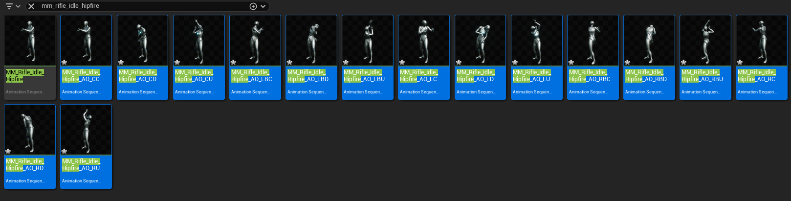 *여기서 Aim Offset에 사용되는 MM_Rifle_Idle_Hipfire_AO_XX 애니메이션의 명칭은 다음 링크를 통해 확인할 수 있다.