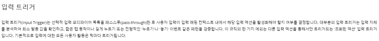 Input Trigger는 공식 문서를 통해 알 수 있는데,