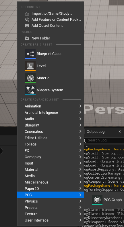 다음과 같이 PCG Volume을 생성할 수 있고,