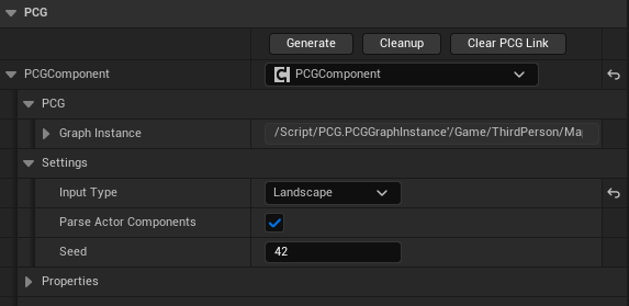 PCG Volume의 디테일 패널에서 Graph를 검색해 나오는 Instance에 PCG Graph를 생성해 연결해 줄 수 있다.