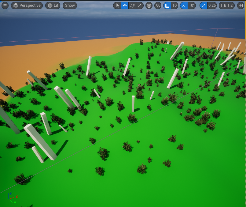 (준비된 에셋이 없어 최대한 나무같은 Starter Content의 기둥을 사용했다! )