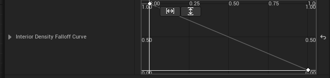 Interior Density Falloff Curve에 커브 값을 설정해주면 밀도에 맞게 설정되는데,