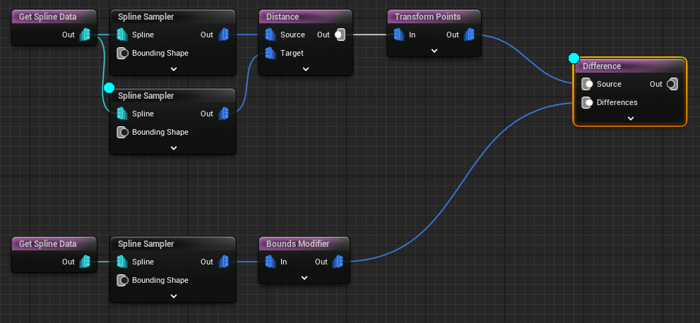 Spline Sampler를 통해 나온 스플라인 데이터를 Bounds Modifier의 값을 조정해주면, 외각의 Bound 두께가 변경되는 것 같으며,