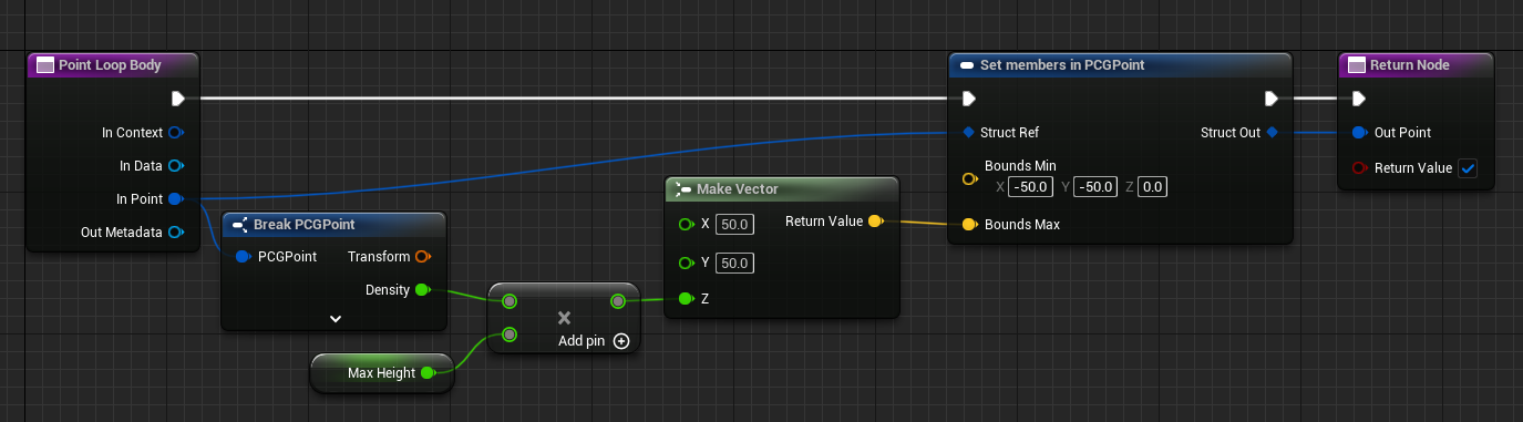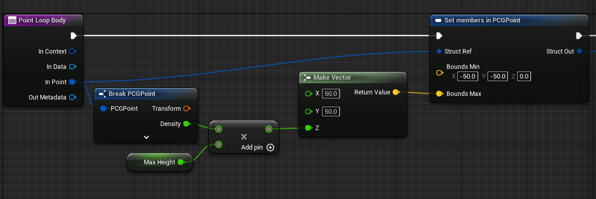 Density 값에 따라 Point의 Z축 크기가 달라지도록 설정하는 PCG 노드를 직접 만드는 과정이다.