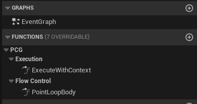 먼저 PCGBlueprintElement를 상속받아 만든 StudyNode에 들어가면 Function이 비어있는데,
