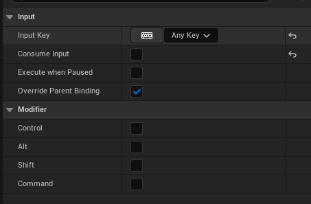 추가로 Any Key 이벤트에는 Consume Input을 해제해주어야만 다른 키 입력에서도 받아진다.